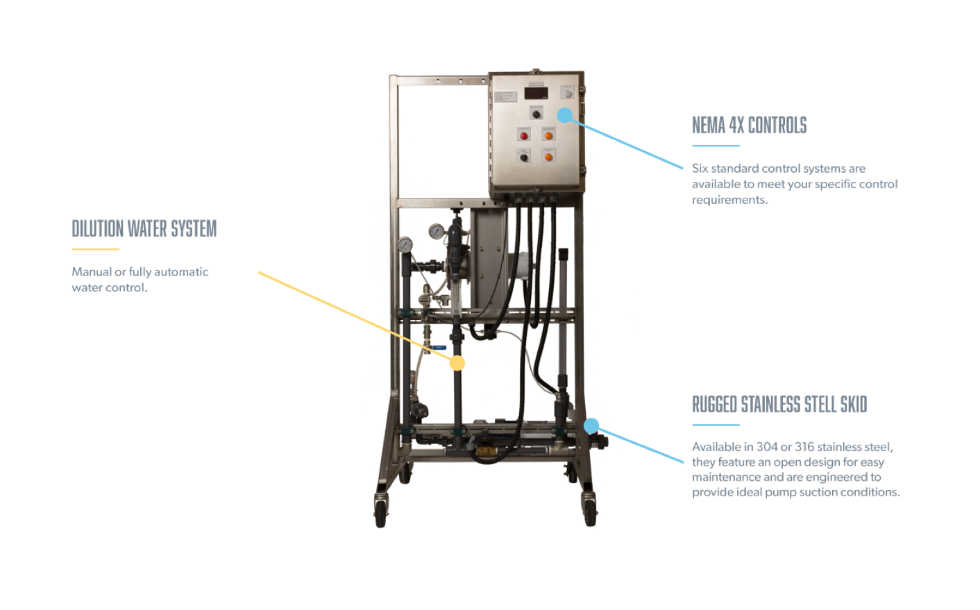 0.025 to 60 GPH neat polymer, 0.2 to 100 GPM solution. Control level Db through RpSB.