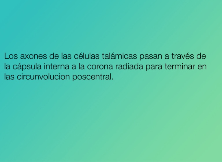 Los axones de las células talámicas pasan a través de la cápsula interna a la corona radiada para terminar en las circunvolucion poscentral.