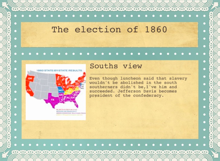 Even though luncheon said that slavery wouldn't be abolished in the south southerners didn't be,I've him and succeeded. Jefferson Davis becomes president of the confederacy.