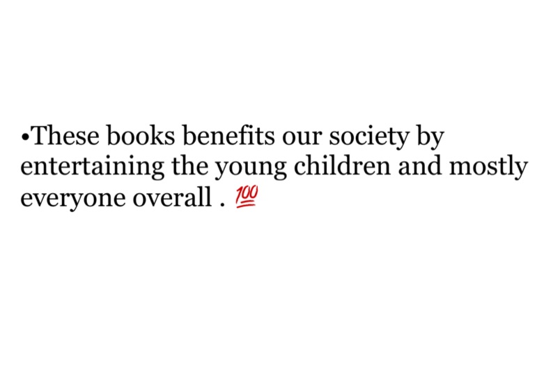 •These books benefits our society by entertaining the young children and mostly everyone overall . 💯