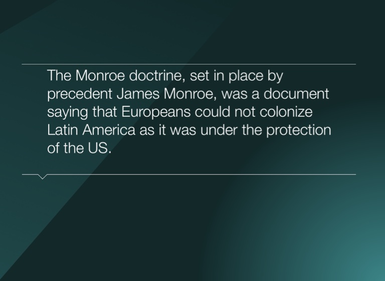 The Monroe doctrine, set in place by precedent James Monroe, was a document saying that Europeans could not colonize Latin America as it was under the protection of the US.