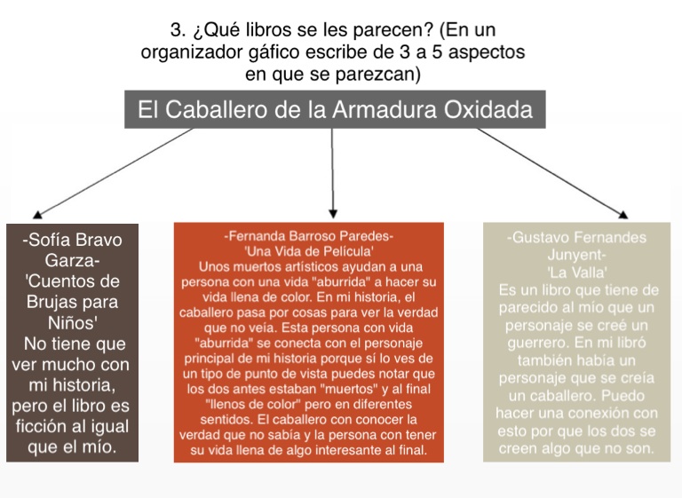 3. ¿Qué libros se les parecen? (En un organizador gáfico escribe de 3 a 5 aspectos en que se parezcan)