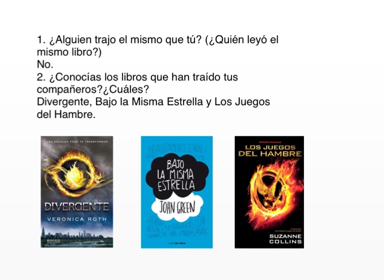 1. ¿Alguien trajo el mismo que tú? (¿Quién leyó el mismo libro?)