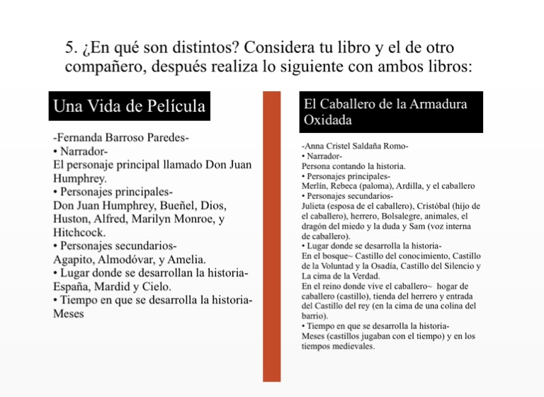 5. ¿En qué son distintos? Considera tu libro y el de otro compañero, después realiza lo siguiente con ambos libros: