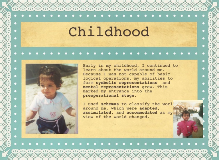 I used schemas to classify the world around me, which were adapted, assimilated, and accommodated as my view of the world changed.