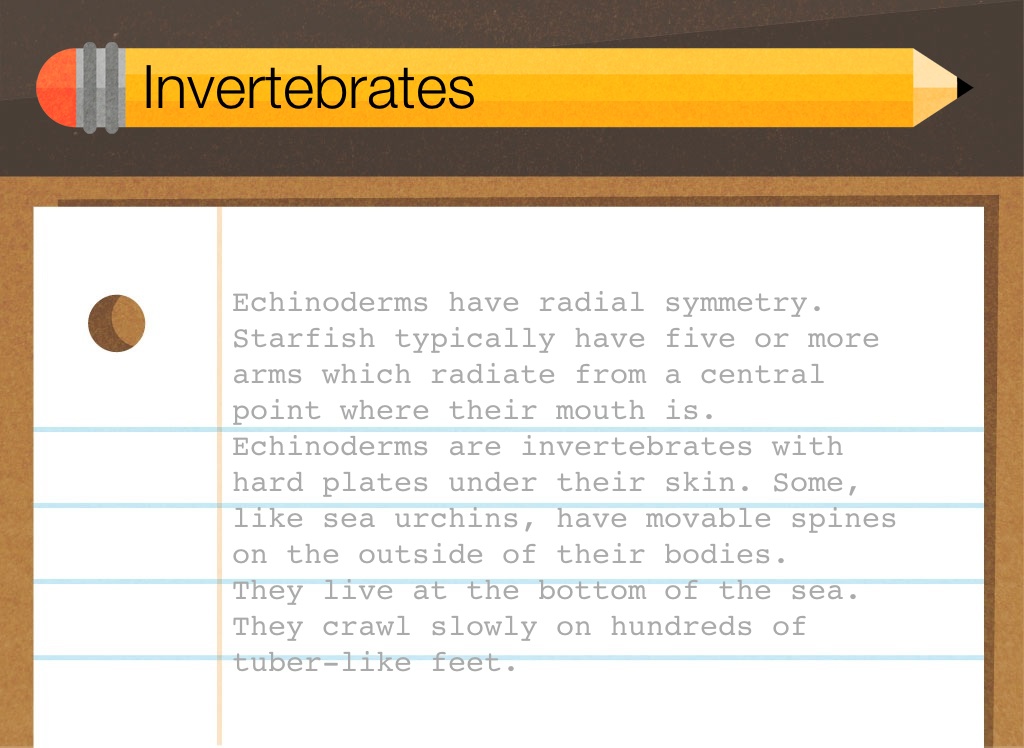 Echinoderms are invertebrates with hard plates under their skin. Some, like sea urchins, have movable spines on the outside of their bodies.