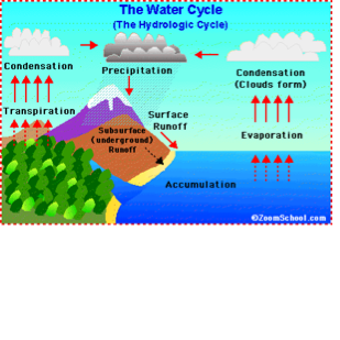 In the water cycle, water moves from bodies of water, land, and living things on earths surface to the atmosphere and back to Earths surface