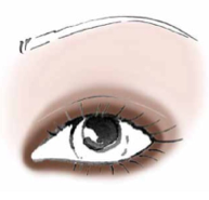 Third: Blend a contour color from the lash line to past the crease and connect the inner and outer corners of the eye and along the lower lash line with your color
