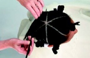 -When picking the hair, use folded end wraps to secure the rods together, because of the spacing of the perm rods normal picks are to short
