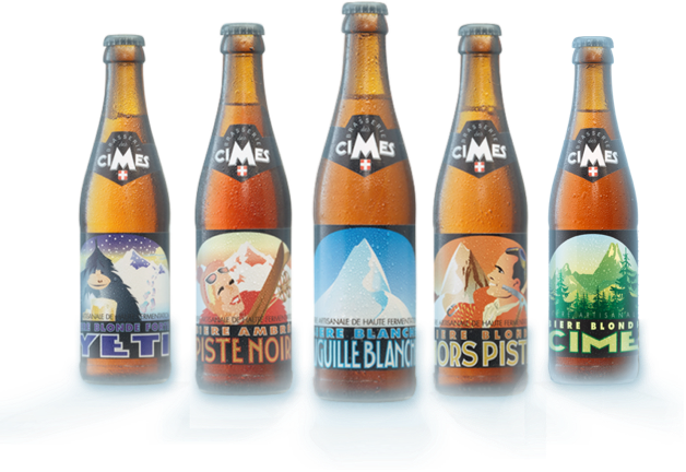 This brewery is located in the valley, but surrounded by the mountains of the Haute Savoie. Alpine theme on the bottles.