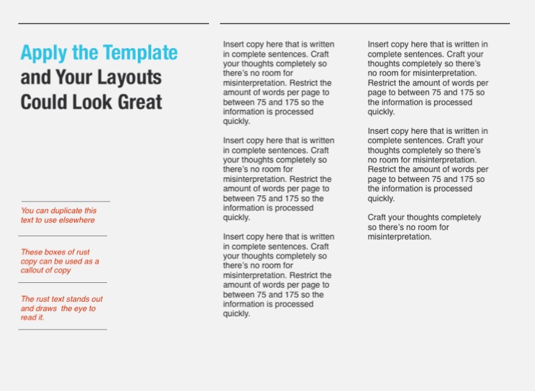 Insert copy here that is written in complete sentences. Craft your thoughts completely so there’s no room for misinterpretation. Restrict the amount of words per page to between 75 and 175 so the information is processed quickly.
