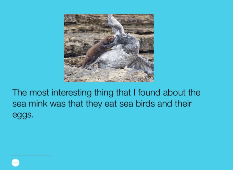 The most interesting thing that I found about the sea mink was that they eat sea birds and their eggs.