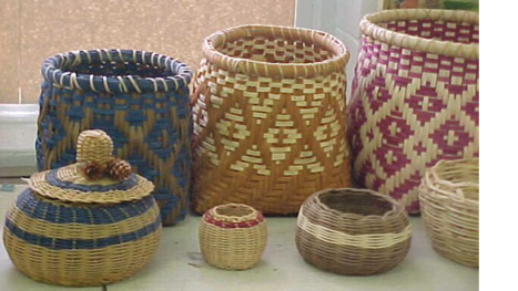 The Cherokee Indians crafted pipe craving, river cane baskets, and pottery. When the Cherokee were forced to move from their home land to Oklahoma,they lost their materials to do such crafts. They adopted beading and textile art as their new crafts.