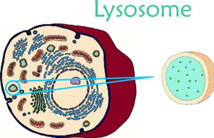 The organelle that digests food particles, wastes cell parts and foreign invaders, membrane bound sac containing digestive enzymes that can break down proteins and nucleic acids.