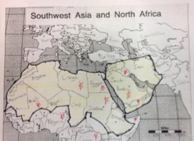 Physical geography: some physical geography that would be seen in SWANA are the Mediterranean and red seas, Indian and Atlantic Oceans, the Sahara desert, the Sahel, Ethiopian highlands, the savanna, ect.