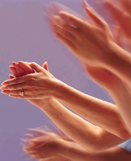 1 De docent doet snelle bewegingen voor en herhaalt die een poosje. Denk aan handen klappen, trappelen, wrijven in de handen, zwaaien etc. De kinderen doen zo goed mogelijk meteen mee.