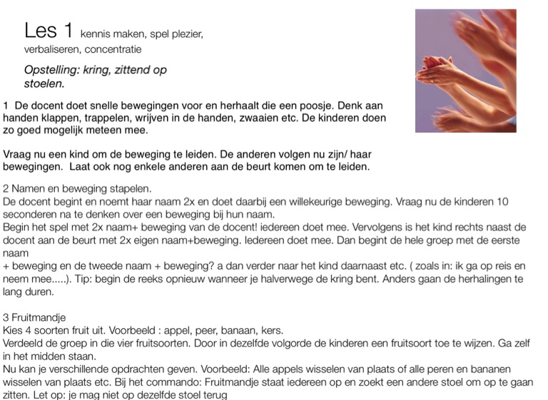 Les 1 kennis maken, spel plezier, verbaliseren, concentratie