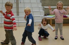 Verdeel de leerlingen in drie groepen. Leg een touw van links naar rechts op het speelvlak.