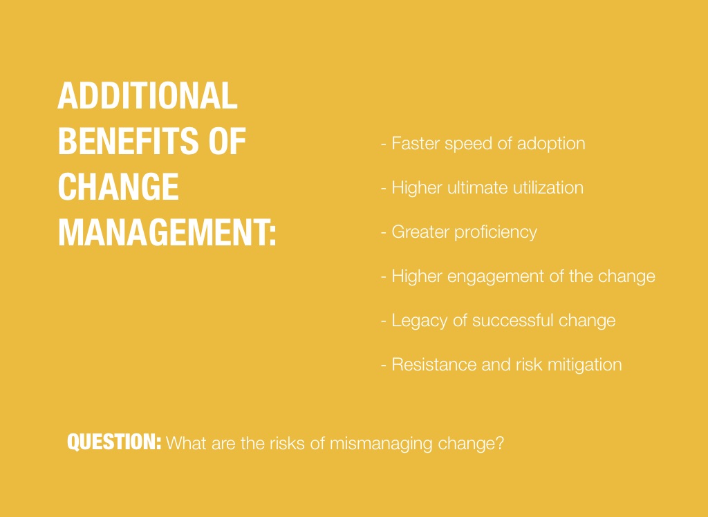 ADDITIONAL BENEFITS OF CHANGE MANAGEMENT: