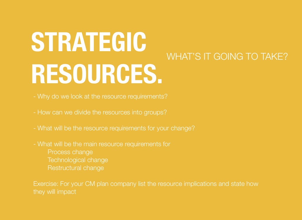 Exercise: For your CM plan company list the resource implications and state how they will impact