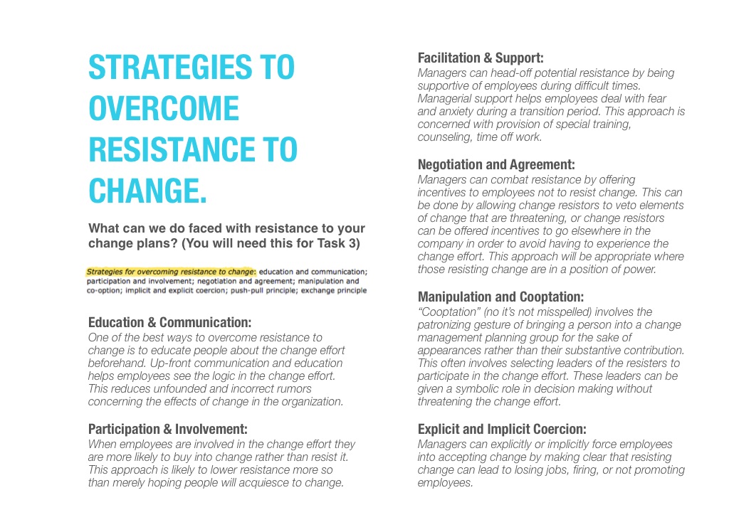 What can we do faced with resistance to your change plans? (You will need this for Task 3)