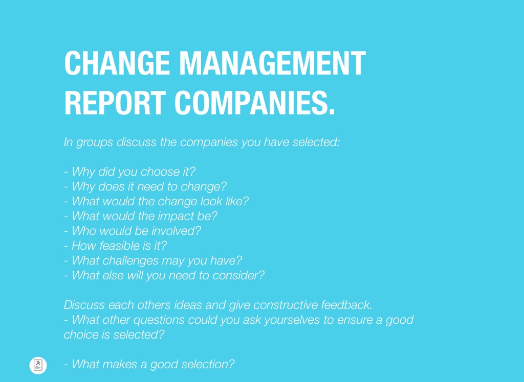 In groups discuss the companies you have selected: