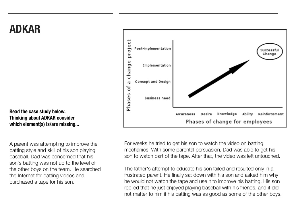 Read the case study below. Thinking about ADKAR consider which element(s) is/are missing...