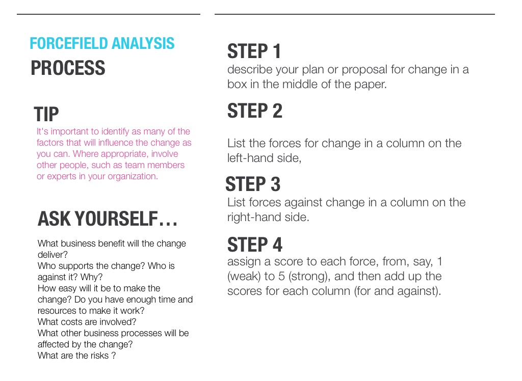 assign a score to each force, from, say, 1 (weak) to 5 (strong), and then add up the scores for each column (for and against).