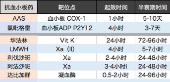 左图:几类常规抗凝抑栓药物的药物学特性比较;