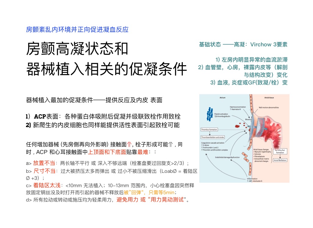 任何增加器械 (先房侧再向外影响) 接触面⇑, 栓子形成可能⇑,同时,ACP 和心耳接触面中上顶面和下底面贴靠最难::