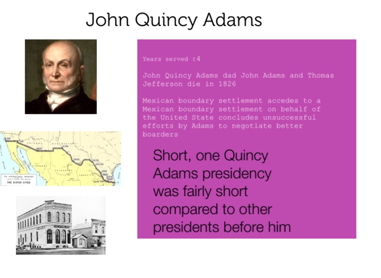 Short, one Quincy Adams presidency was fairly short compared to other presidents before him