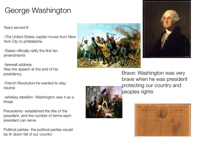 Brave: Washington was very brave when he was president protecting our country and peoples rights