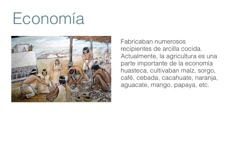 Fabricaban numerosos recipientes de arcilla cocida. Actualmente, la agricultura es una parte importante de la economía huasteca, cultivaban maíz, sorgo, café, cebada, cacahuate, naranja, aguacate, mango, papaya, etc.