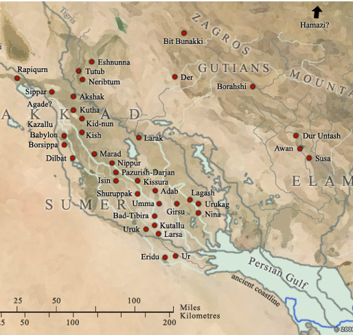 Beginning around 5,500 years ago about 4000 BCE, the Sumerians had organized themselves into several city-states that were spread throughout the southern part of the region.