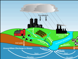 3) groundwater flowing into a river