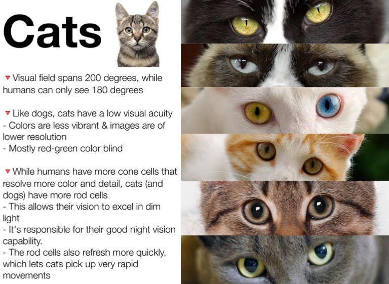 🔻While humans have more cone cells that resolve more color and detail, cats (and dogs) have more rod cells