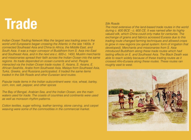 Popular trade items in the Indian subcontinent were: rice, wheat, barley, corn, iron, salt, pepper, and other spices