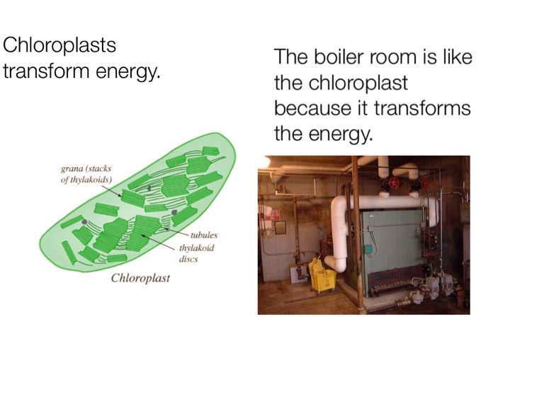 The boiler room is like the chloroplast because it transforms the energy.