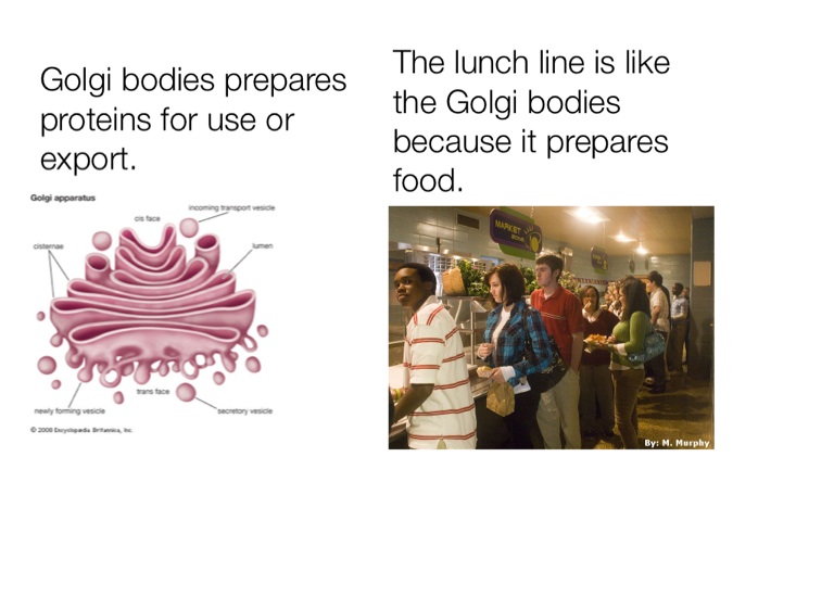 The lunch line is like the Golgi bodies because it prepares food.