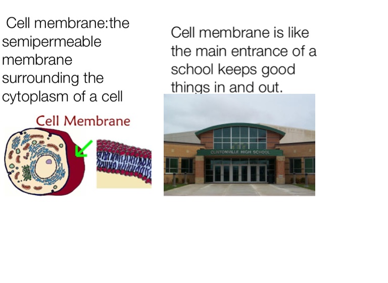 Cell membrane is like the main entrance of a school keeps good things in and out.