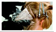 6. After applying formula 1, gently lay the saturated subsection away. With long hair, lay the subsection on top of the protective foil covering the neck.