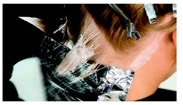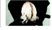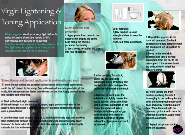 This is a double process blonde service: first, the lightener is applied and then, after shampooing, the toner is applied.