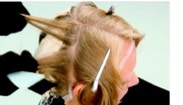 9. Move to the front right quadrant and take a vertical subsection from the ear to the center part. If the subsection is too wide, divideit in half for greater control.