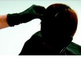 5. Start at the nape in the back right quadrant. Lift the quadrant up with one hand and use the other hand and the tail of a color brush to take a diagonal ¼ " subsection. Clip the