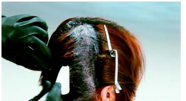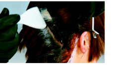 6. Using a color brush, thoroughly apply formula 1 to the new growth.