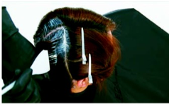 4. Begin product application with formula 1. Outline the back right quadrant along the hairline and parts, all the way around the perimeter of the quadrant.