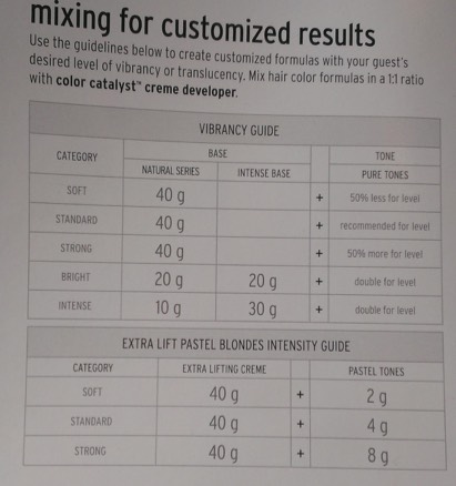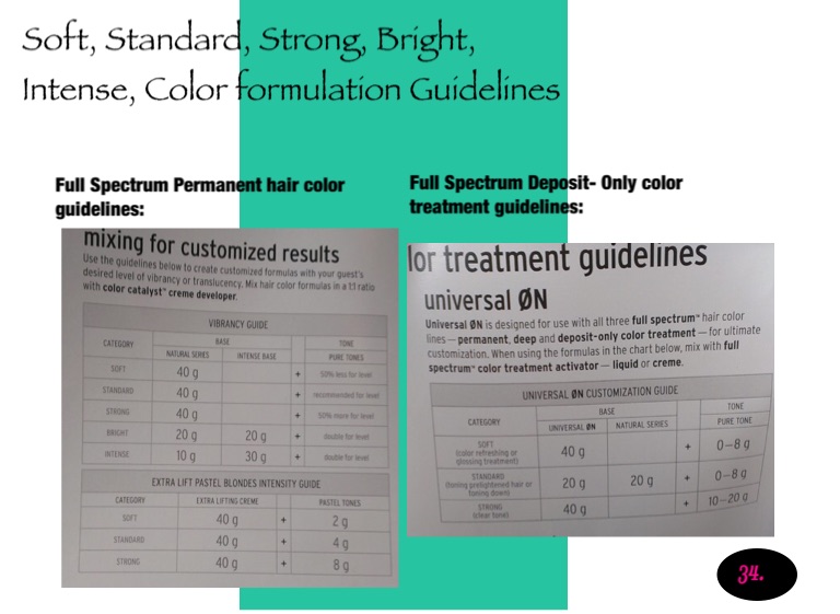 Soft, Standard, Strong, Bright, Intense, Color formulation Guidelines
