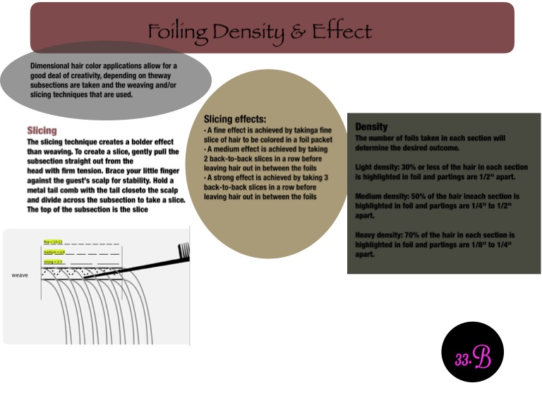 · A strong effect is achieved by taking 3 back-to-back slices in a row before leaving hair out in between the foils