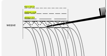 · Medium effect is achieved with 6 to 8 weaves per subsection