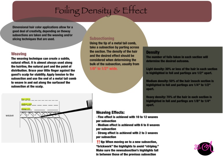 Heavy density: 70% of the hair in each section is highlighted in foil and partings are 1/8" to 1/4" apart.